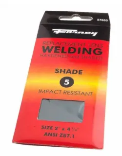 - Replacement Lens, Gas Welding, Shade #5, 2" (50.8mm) x 4-1/4" (107.95mm) hardened welding lens. Meets ANSI Z87.1