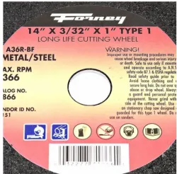 - Aluminum oxide metal cutting wheel.