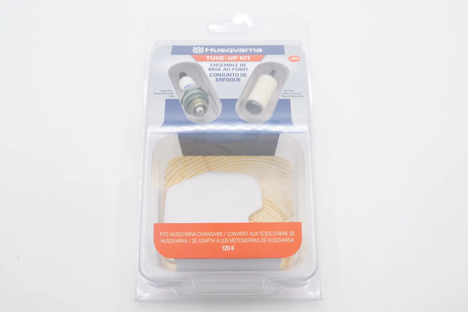 Includes parts used for routine maintenance on Husqvarna 120 II (120 2) chainsaws.