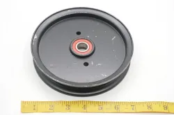 Also referred to as a belt idler pulley or deck idler pulley.