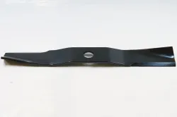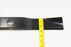 Remember to block the wheels and apply mower brake. With deck raised, mower lifted and secured with jack stands it took 10-15 minutes. Blade bolts are standard threads