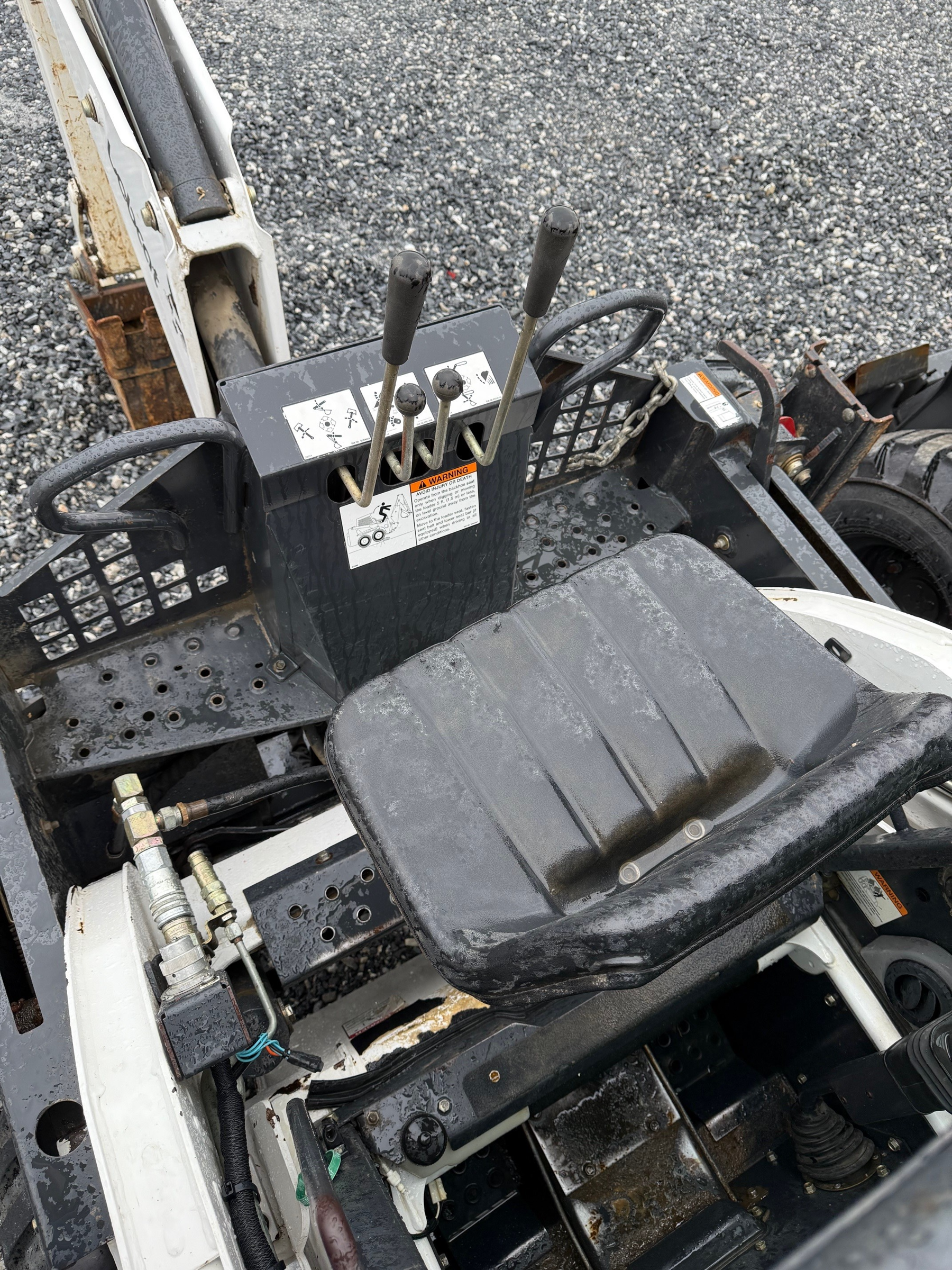 Bobcat Model 709FDS Skid Loader Backhoe Attachment, 16" pin-on trenching bucket w/teeth, 116.6" max dig depth, 83.3" max loading height, 180-degree boom swing, hydraulic stabilizers, fits Bobcat Model 753/763/773/863 Skid Loaders (skid-steer-half brackets NOT included), 1640lb weight, Serial #584101279