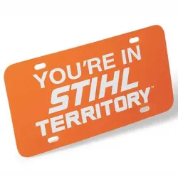 This orange high impact plate is constructed of durable polyethylene. Features high gloss UV inks for improved visualization. Measures 6" H x 12" W. YOU'RE IN STIHL TERRITORY™ screened in white.