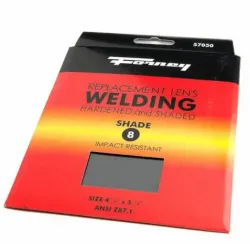 - Replacement Lens, Welding, #8 Shade 5-1/4" (133.35mm) x 4-1/2" (114.3mm) hardened welding lens. Meets ANSI Z87.1