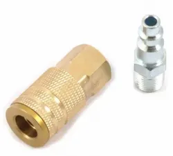 - Air Fittings, Plug/Coupler Set, 1/4" (6.35mm) Industrial/Milton® (I/M®) compatible plug and coupler set.