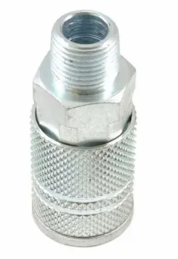 Air Fittings, Coupler, 3/8" (9.52mm) Industrial/Milton® (I/M®) compatible coupler with 3/8" male national pipe thread (NPT).
