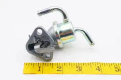 Easy to locate - downstream of fuel filter. Two nuts on two studs hold it in place. Be prepared with vise grips to clamp both fuel lines to prevent siphoning from both tank and injectors.