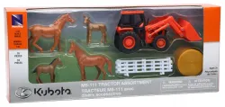- Includes: One each; Tractor, Corral, Two each; Hay Bales, Four each; Horses