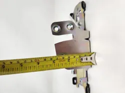 After unscrewing the four mounting screws, and fifth for the unlocking lever, unscrew plastic lock (top portion), and remove cover. Un-bolt top and bottom 10mm bolts, remove the pin from the locking mechanism on the bottom, pull key lock out (this is key), THEN remove whole assembly (inner and outer), replace bracket, unscrew lock assembly from old bracket (3 screws), and replace. Without moving the key-locking cylinder at the bottom, you will not be able to properly remove the outer-handle assembly.