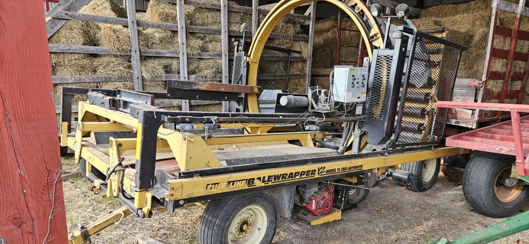 Inline Bale Wrapper, Can Wrap All Size Round Bales Up To 5' X 5.5' and Big Square Bales Up To 5' In Length Twin 30" Wrap Spools, Single 13 H.P. Honda Gas Engine (GX390)
