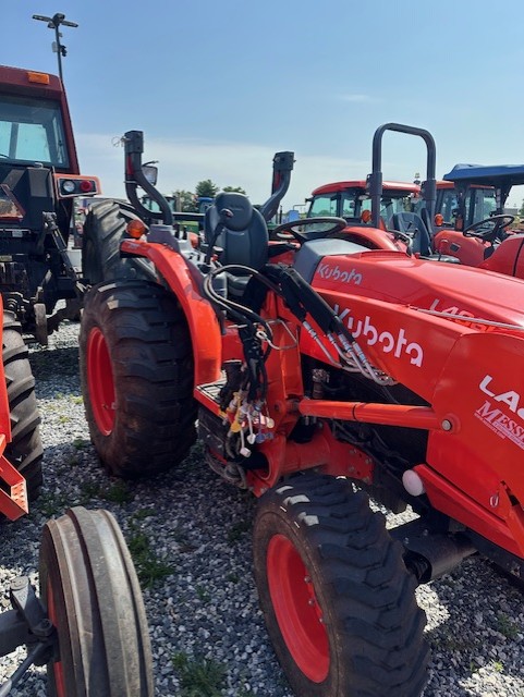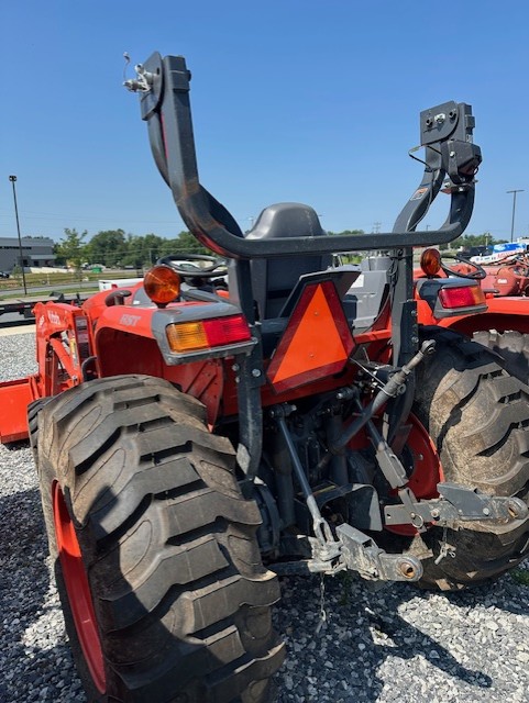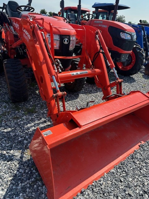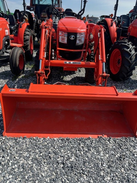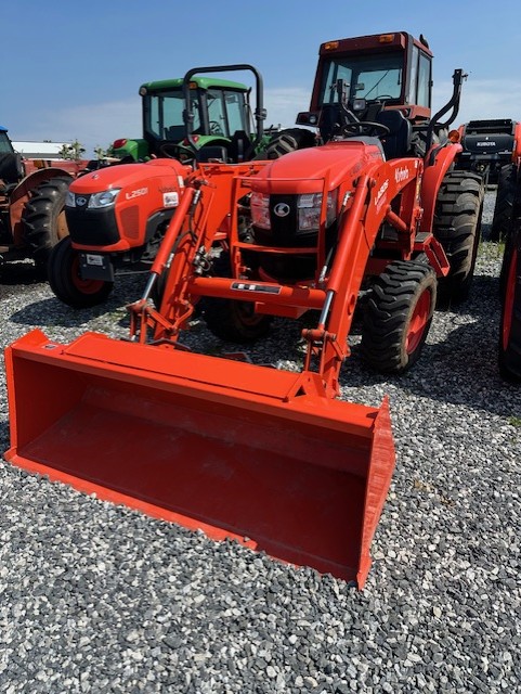 40 HP 4-cyl. Kubota diesel engine, 228 hours, 4 wheel drive, category I 3-point hitch, 32.5 HP, 540 PTO, electric over hydraulic PTO switch, 2 speed hydrostatic drive - HST PLUS transmission, Rear diff lock, 3 Forward/Reverse ranges, auto throttle advance, Tachometer/hour meter, Warning symbols, HST mode selection; Digital read for speed, MPH, PTO speeds, diagnostic systems, 2 sets of rear remote kits, LA805 front end loader w/72" QA bucket w/3rd function valve kit, rear wheel weights, R4 tires. Powertrain warranty until 3/29.