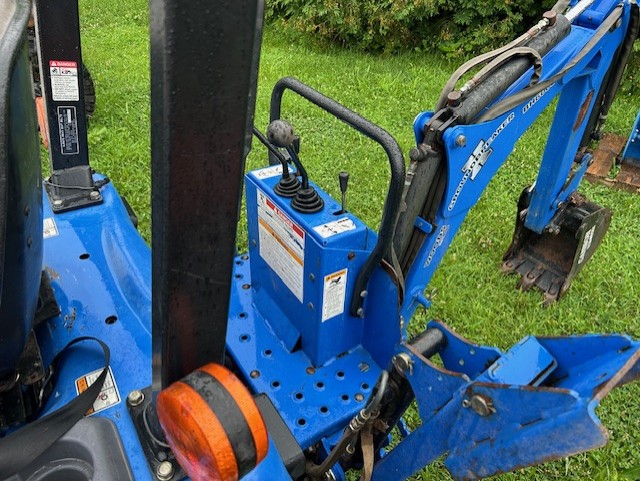 25 hp. Diesel Engine, Hydrostatic Transmission, Four Wheel Drive, Power Steering, Turf Tires, 472 Hours, Three Point Hitch, Front Grille Guard, 540 PTO, ROPS, New Holland 60CMS 60" Under mount mower deck with anti scalp wheels, 10LA Front End Loader w/ Pin On Material Bucket, BH6000 Backhoe w/ Trenching Bucket, 50CS Front Two Stage Snow Blower.