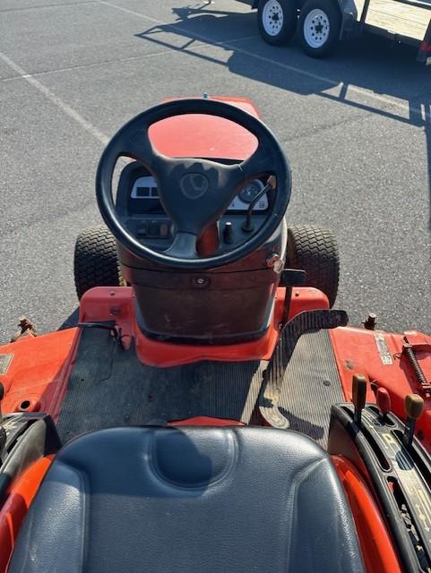 22 horsepower, 3-cylinder Kubota diesel engine, 2 speed hydrostatic transmission, 4WD, 1377 hours, turf tires, 3 point hitch, 540 rear PTO, 60" mid mount mower deck.