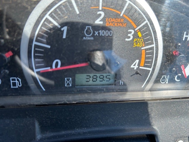 23 HP Kubota Diesel Engine with 385 hours, 4WD, Rear Differential Lock, 2 Range Hydrostatic Transmission, Power Steering With Tilt Wheel, Mid 2500 PTO/Rear 540 PTO, Category I 3-Point Hitch, Cruise Control, Reclining High Back Seat With Armrests, Lights / Signals / Hazard Flashers, 18x8.50-10 Front Tires, 26x12.00-12 Rear Tires / Turf tread pattern. Integrated loader valve. LA344 Kubota loader swift-tach system with single lever hydraulic coupler and skid loader mount plate, QA 48 inch bucket. 60" high-capacity mower deck.