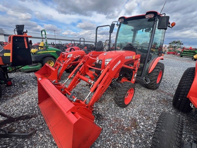 2020 Year / 196 Hours / Compact Tractor With 26 HP Tier IV Diesel Engine, 19.5 PTO HP, 4WD, 3 Range Hydrostatic Transmission, Rear Differential Lock, Deluxe Cab With Heat & A/C, Radio, Power Steering, Mid 2500 PTO/Rear 540 PTO, Category I 3-Point Hitch With Position Control(2139 lb Lift Capacity At Lift Point/1676 lb At 24" Behind), Cruise Control, Adjustable Seat Suspension, Lights/Turn Signals/Hazard Flashers, 23x8.50-14 Front R4 Tires 12.4-16 Rear R4 Tires(Fluid Filled) Quick Attach Loader with 84" lift height, 1146lb lift capacity (pivot-pin), skid-loader compatible quick coupler. 60" bucket.