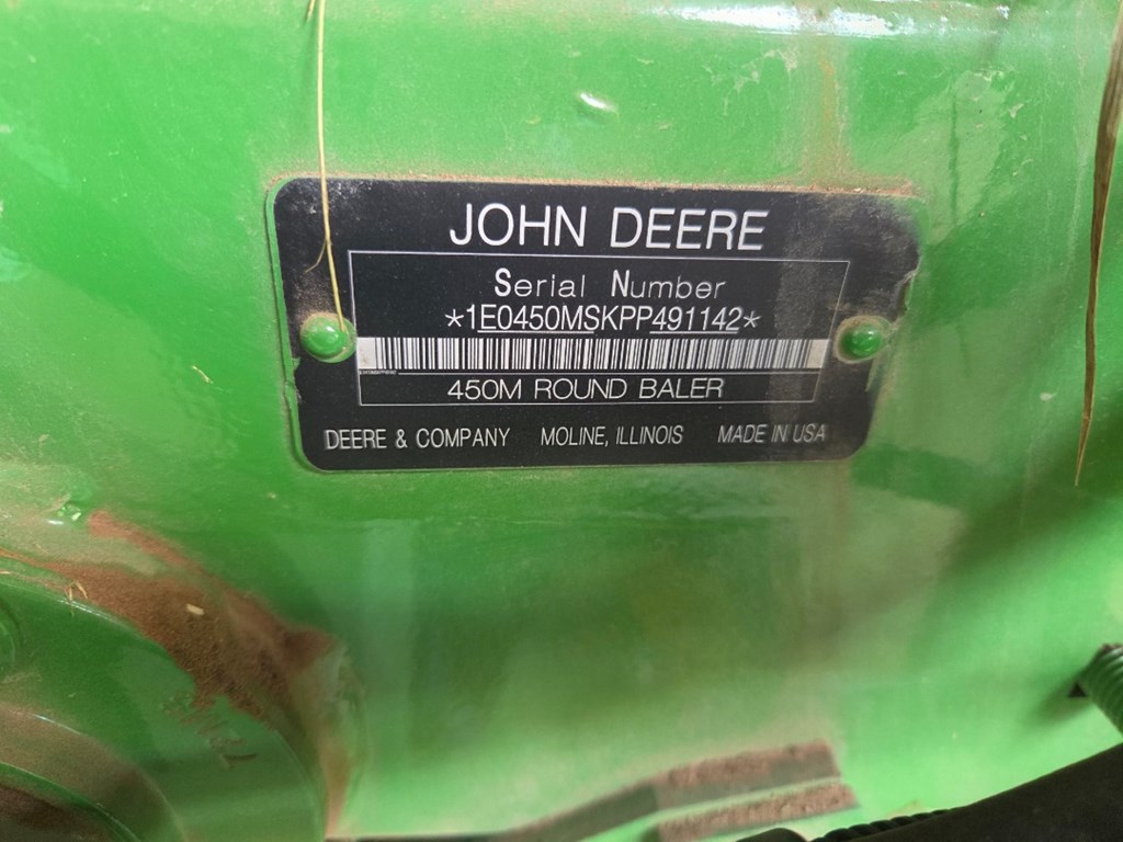 2025 John Deere 450M Silage Special Baler, 4' x 5', Net Wrap and Twine, Laced Belts, Manual Pickup Lift, Roller Windguard, 31x13.5, 8pr hi-flotation tires, Road Lights, Warranty until next Spring of 2026, Like new!