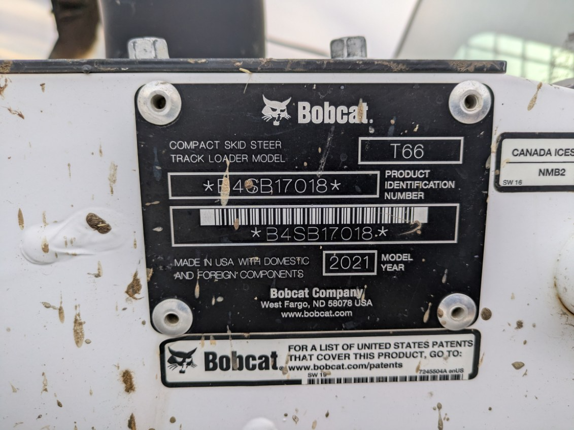 ONLY 575 HOURS!!! 2021 Bobcat T66 R Series CTL, 74 HP Diesel, Hi Flow Hydraulics, 2 Speed, Hydraulic Quick Attach, No Bucket, Selectable Pattern Joystick Machine, Enclosed Cab with Heat and AC, Radio, Front and Rear Work Lights, Weight Package, 2450# Lift Capacity, 8927# Operating Weight.
