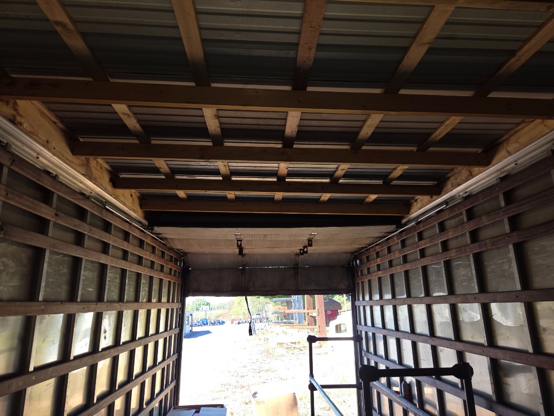 28' Long Us Truck Body, 102" Wide, 10' Tall, Rear Sliding door, door is a bit rough but works, Side entry door, Nice wood floor, Aluminum Constructions, Steel floor members are in good shape, Roof was bad so it had a tin roof added to the box, not pretty but it works and does not leak.